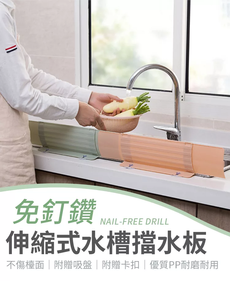 無痕貼洗手台可伸縮擋水板隨機出貨吸盤廚房水槽防濺水防水板 Pchome 24h購物